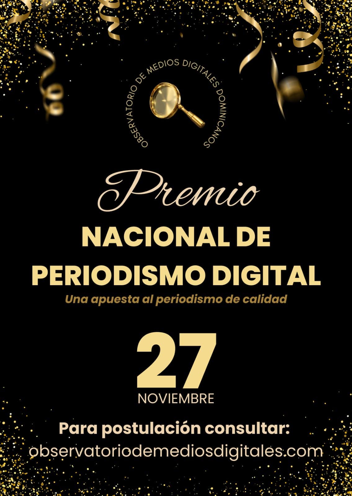 Gran Premio NacionalComo cada año, se entregará el Gran Premio Nacional de Periodismo Digital, un reconocimiento especial a un periodista con amplia trayectoria y aportes significativos al periodismo digital en la República Dominicana.La ceremonia de premiación será celebrada el jueves 25 de noviembre de 2025, a las 7:00 de la noche, en el hotel Barceló Santo Domingo.